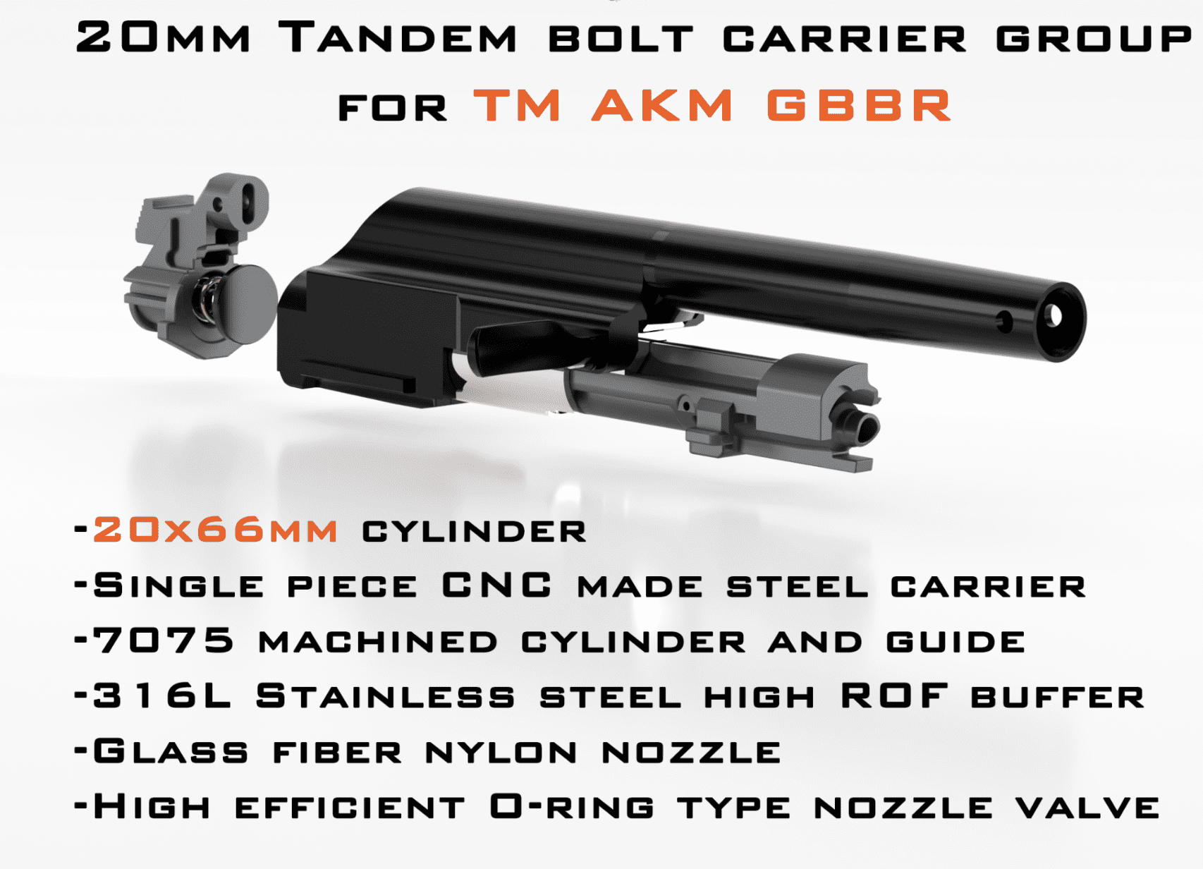 20mm Tandem CNC steel bolt for Tokyo Marui AKM GBBR(Gen2)